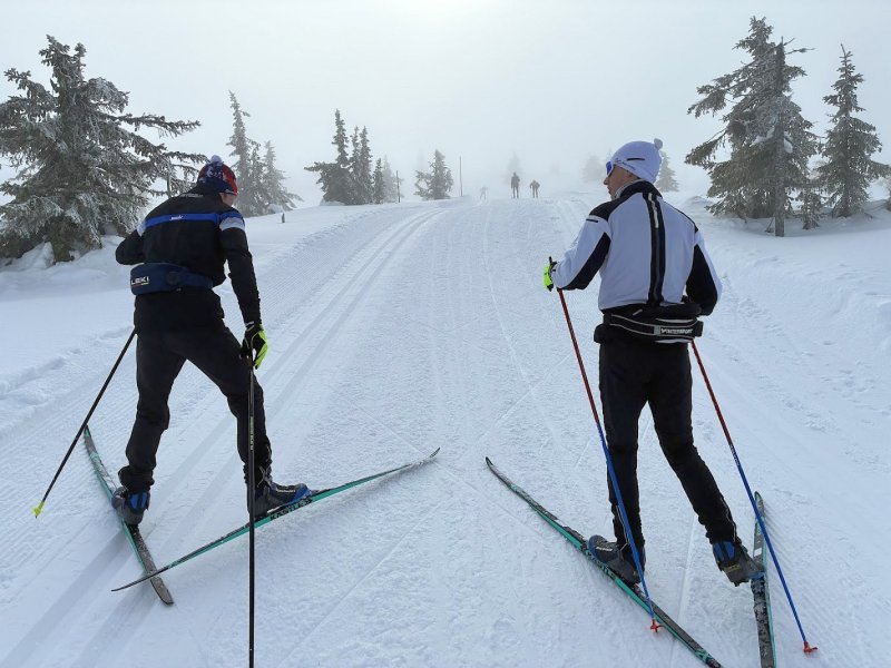 Na místo pobytu jsme dorazili ve dvou dodávkách, celkem 13 lidí a za 1. tým Zdenda, Milan, Petr, Honza, Vojtik a já a za druhý A. tým Čenda s Péťou a kluky Fílou a Kubou a Marťa s Kubou a čekatel Pavel. V prvních dnech jsme úspěšně najížděli kilometry a čas trávili výlety s intenzivnějšími tréninky, někteří postupně před závodem mírnili čas na lyžích, Zdenda, ale i Milan a další pro tentokrát svou regeneraci vyměnili za množství ujetých kilometrů. Výlety v lokalitě Sjusjoenu jsou zde parádní, skoro 300 kilometrů denně upravených tratí. Letošní pobyt byl trochu ovlivněn více mlhavějším počasím, ale které nic neubralo na radosti z lyžování.